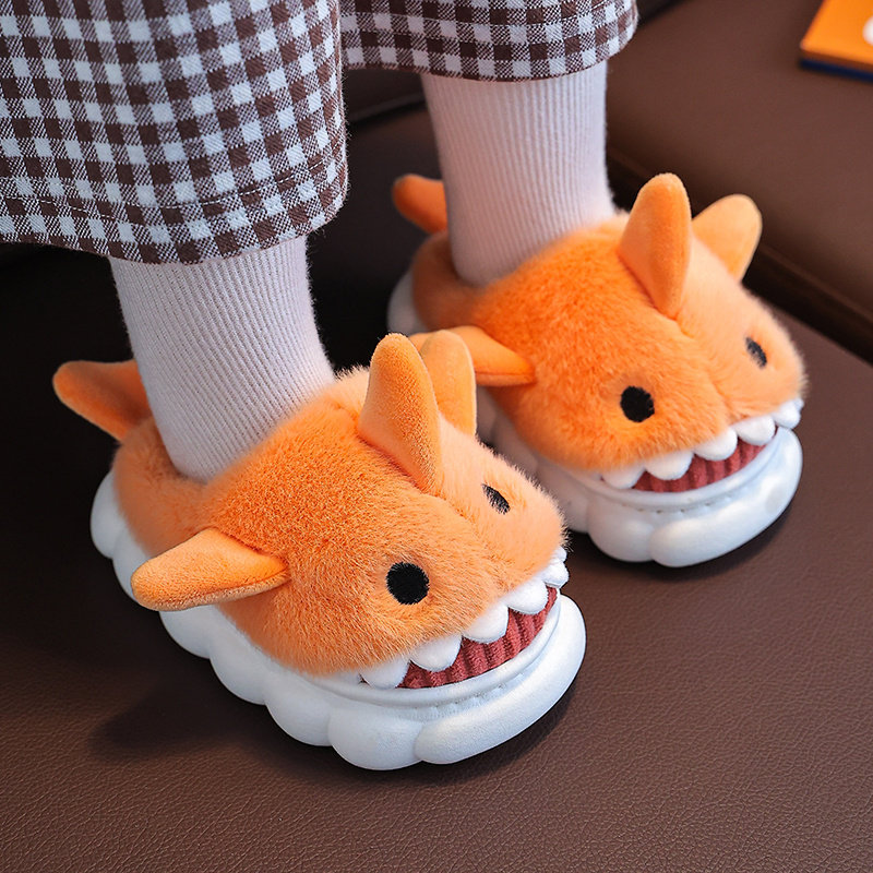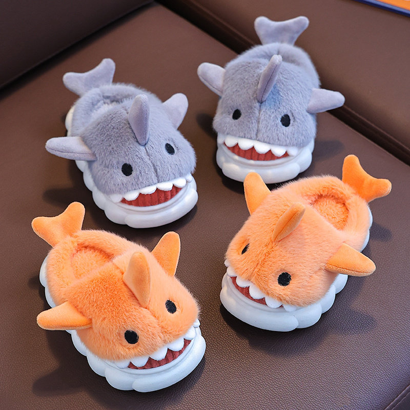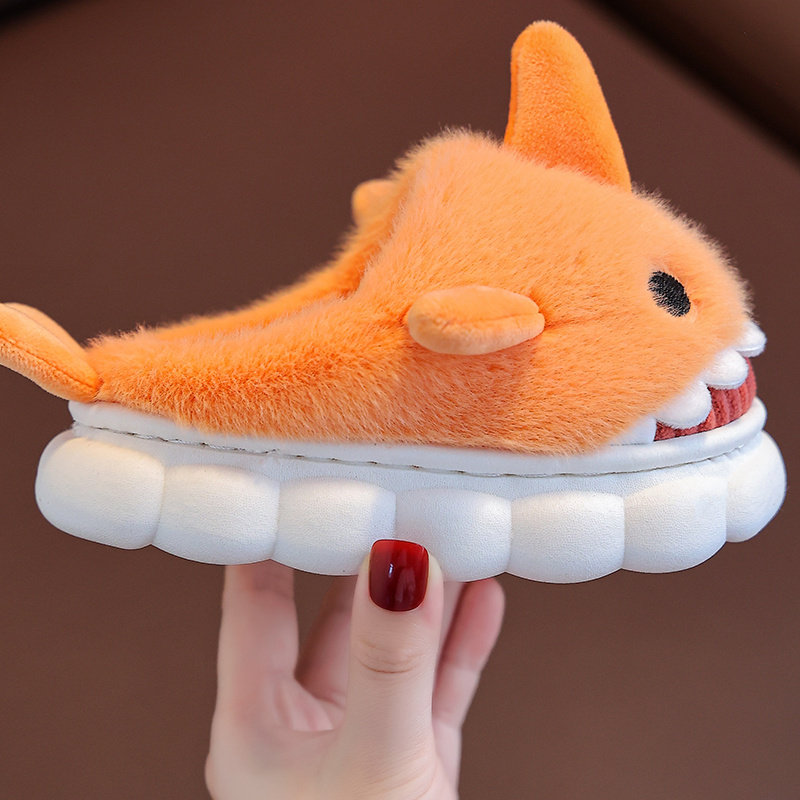 儿童棉拖鞋秋冬季宝宝防滑居家毛毛鞋男女童大中小童保暖室内鲨鱼