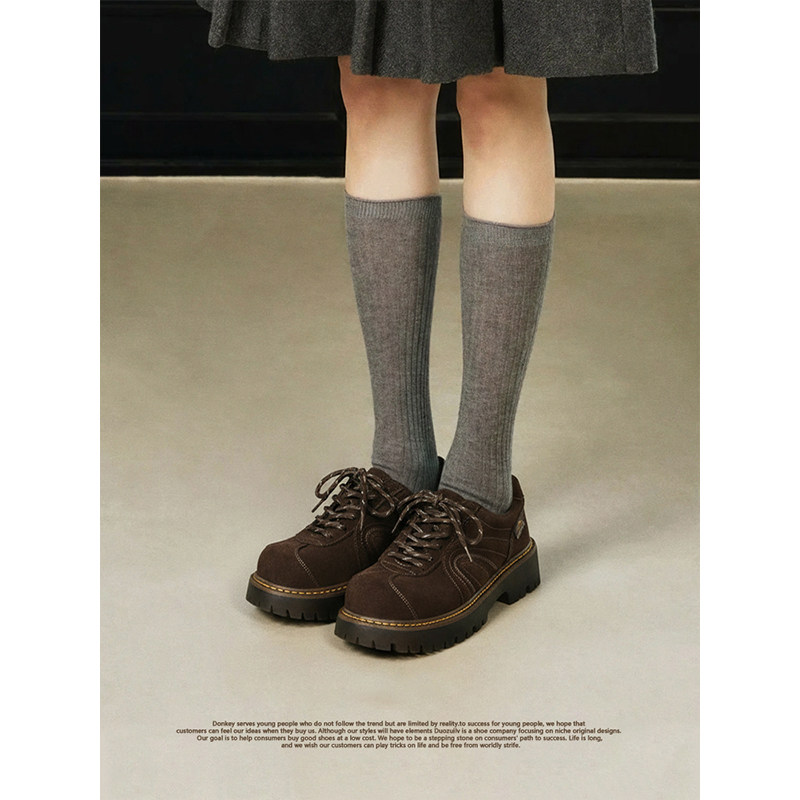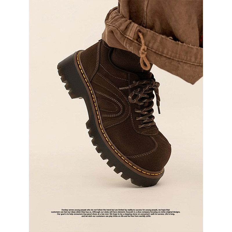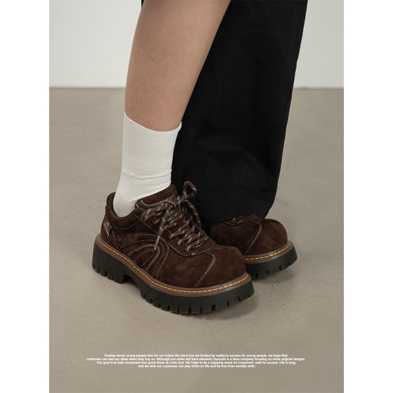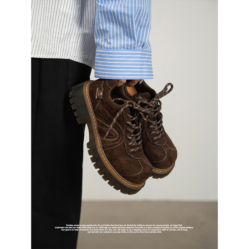 Chio2nd南风 4cm增高磨砂牛皮德训鞋子女款秋冬复古休闲鞋运动鞋