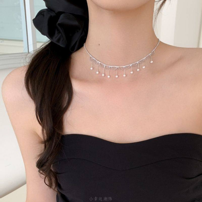3FANTASTS珠光流苏项链法式蕾丝碎珠精致百搭小众清冷感锁骨链