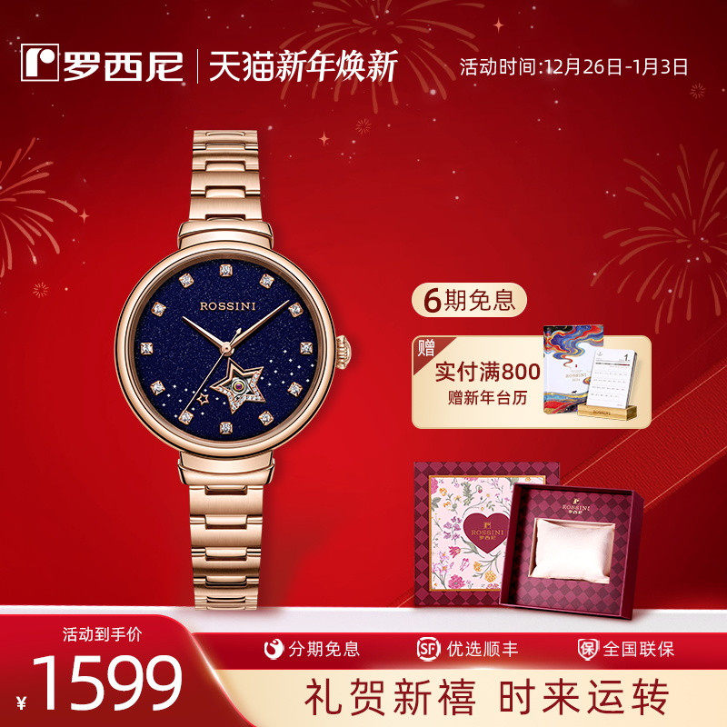 【圣诞礼物】罗西尼满天星气质时尚手表女机械表礼盒女腕表送女友