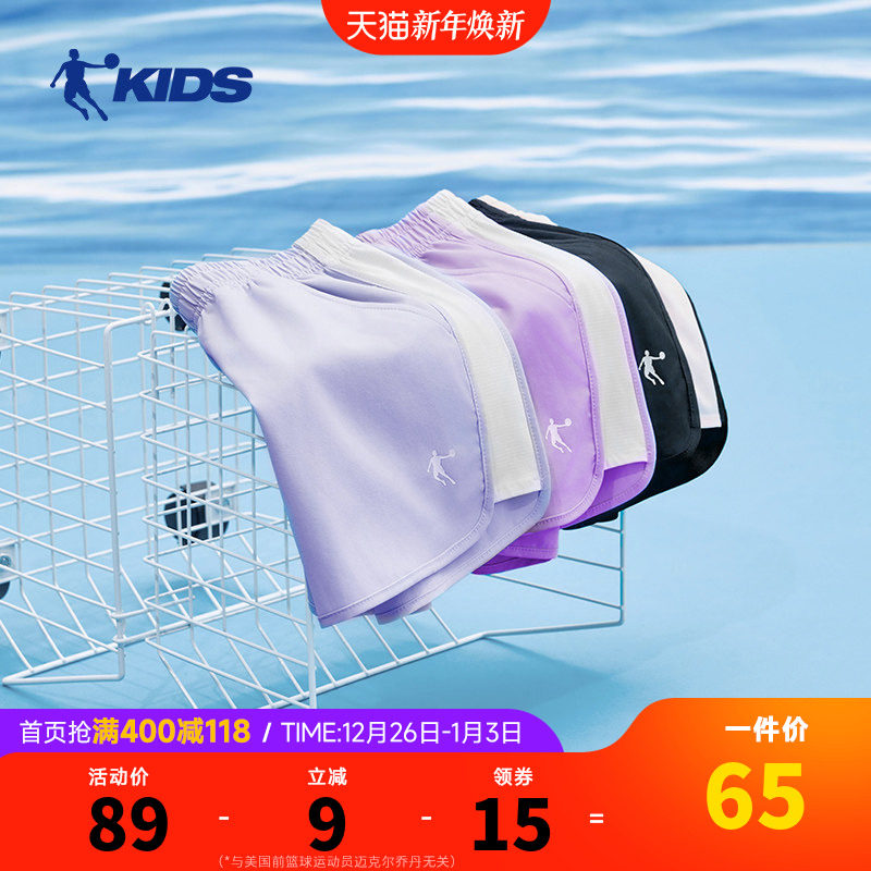 中国乔丹童装女童短裤速干裤夏季儿童五分裤吸湿快干女孩运动裤子