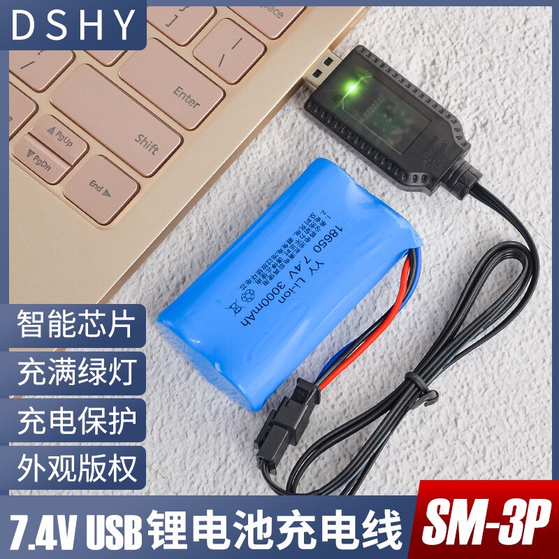 14500/18650 7.4v锂电池充电线3个孔SM-3p三针线玩具枪赛车充电器