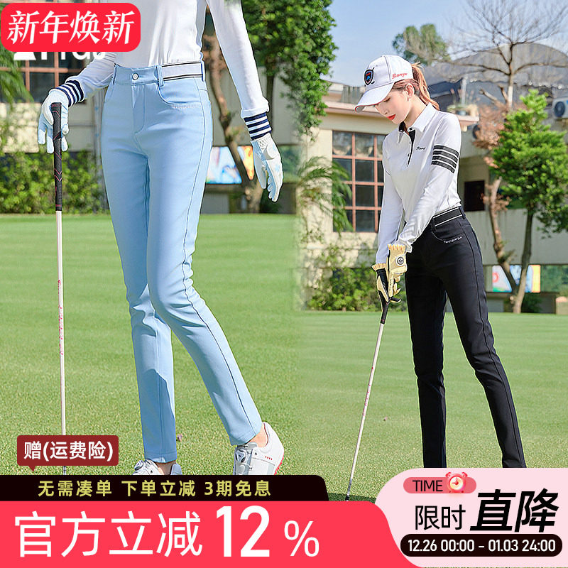 高尔夫球女士长裤弹力修身保暖加绒中腰运动白黑蓝色休闲裤子服装