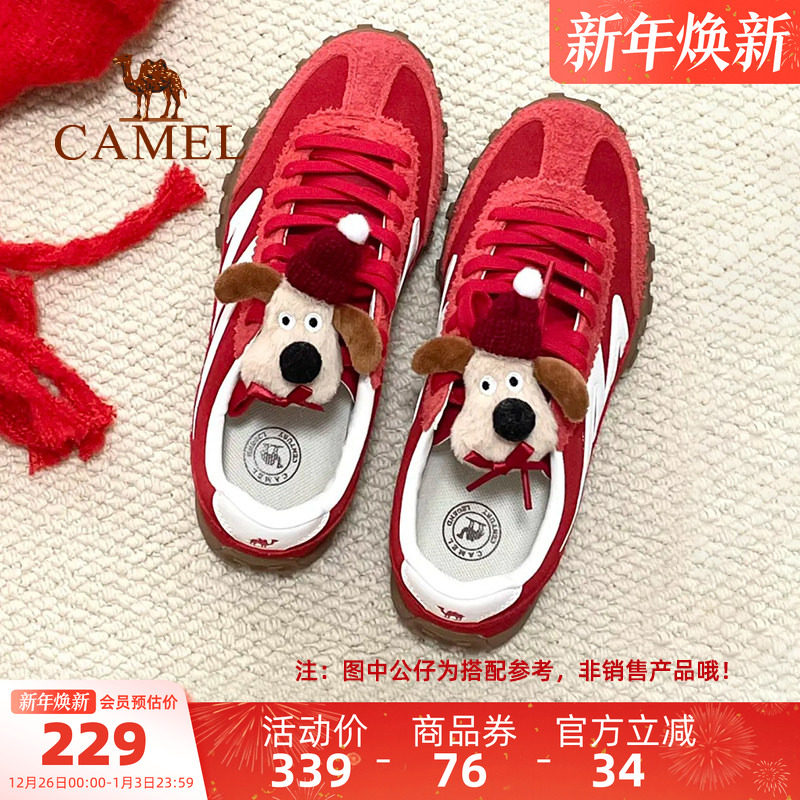 骆驼山海运动鞋秋冬女款红色鞋子休闲女鞋百搭复古德训鞋新年礼物