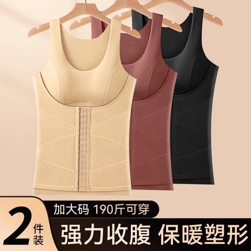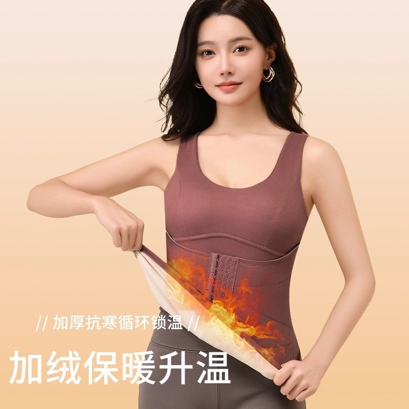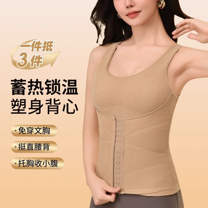 秋冬季女士保暖防寒自带胸垫修身塑形收腹排扣无袖背心女塑身文胸