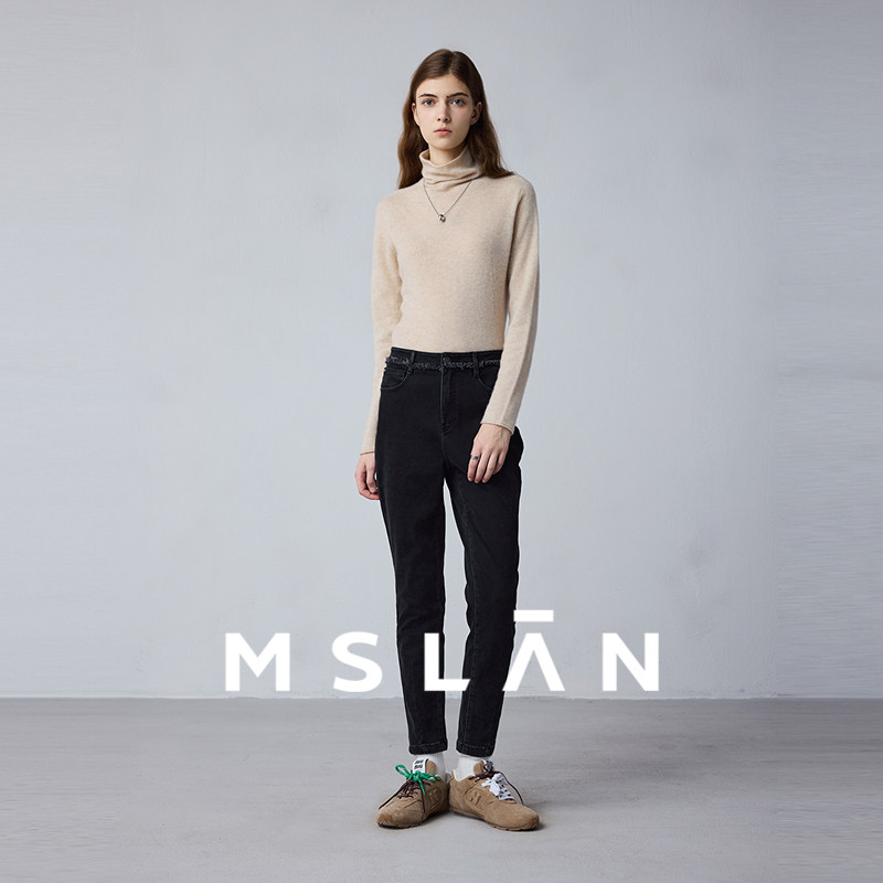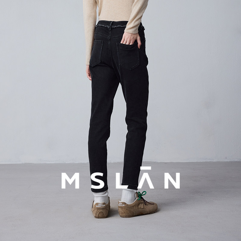 四面弹/MSLAN冬季简约高腰黑色紧身显瘦牛仔裤小脚裤MFDK016