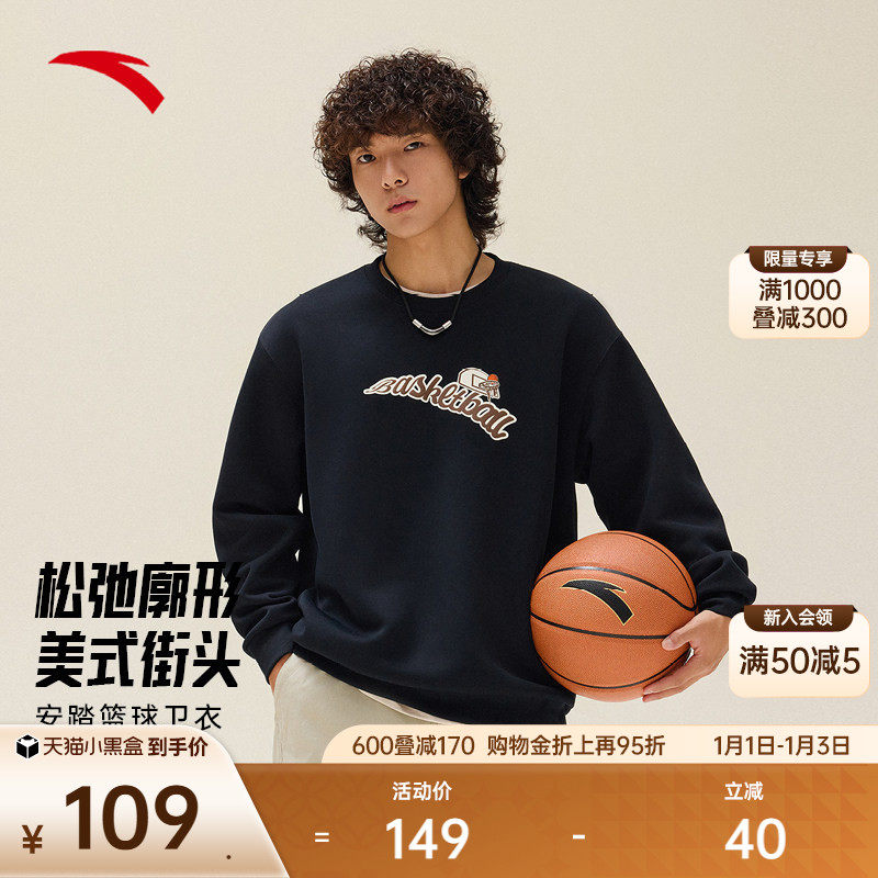 安踏潮流美式运动卫衣男女冬季新款宽松圆领长袖套头衫运动服上衣