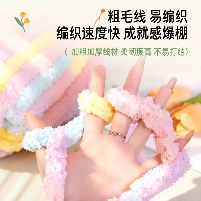 超粗猫尾巴手指彩虹毛毯编织diy毛线材料包手织围巾毯子坐垫盖毯
