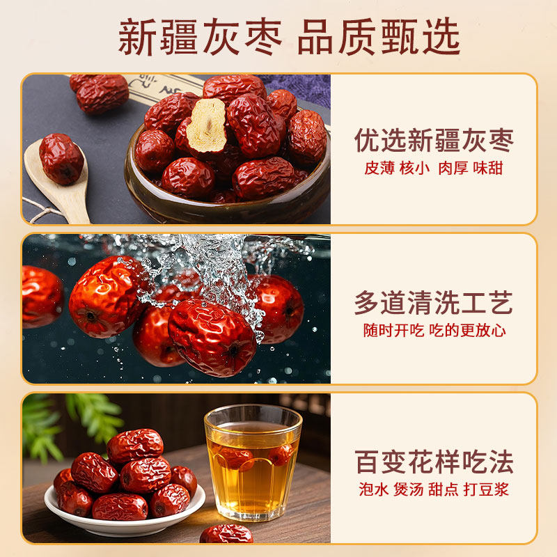 老街口新疆灰枣500g袋装若羌灰红枣新货免洗果干零食大枣优选新鲜