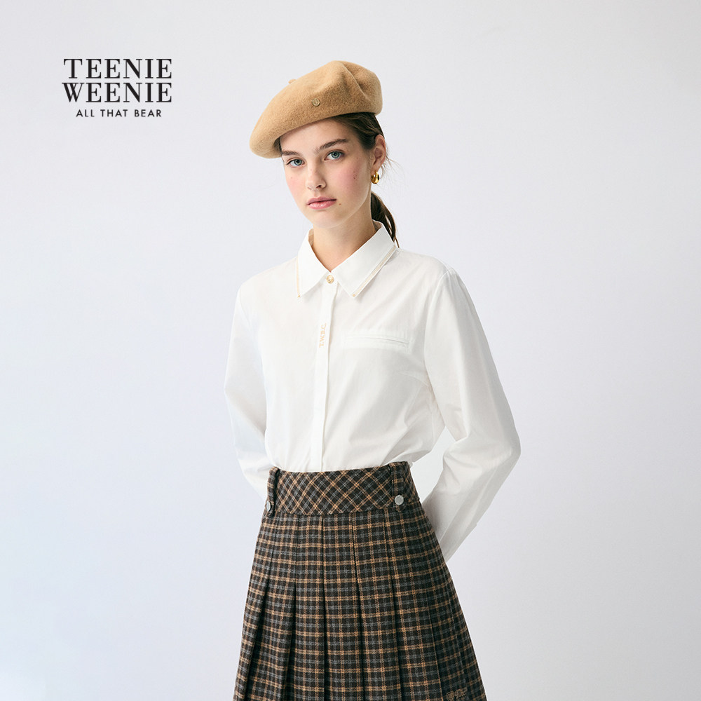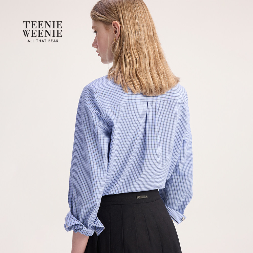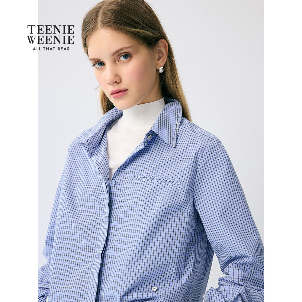 TeenieWeenie小熊女装衬衫2025秋季新款简约时尚短款翻领露脐上衣