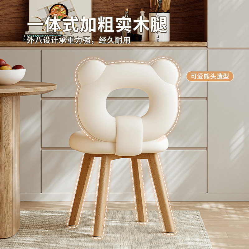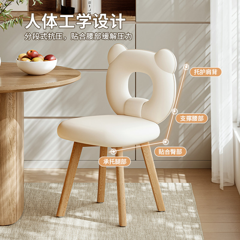 家用餐椅轻奢高级感法式餐厅餐桌椅子靠背现代简约小熊化妆椅软包