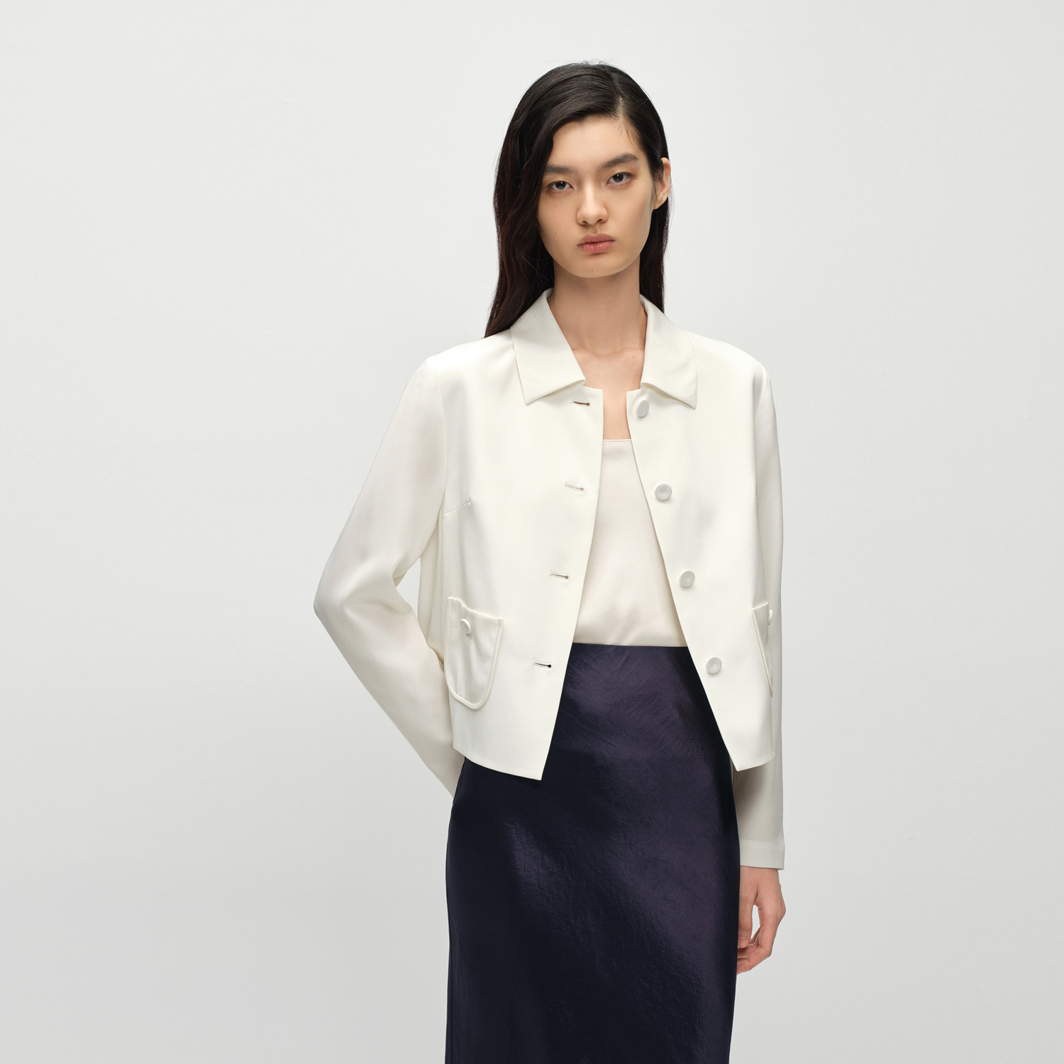 【重磅真丝】OVV2025春夏新款女装22MM弹力重绉小翻领夹克