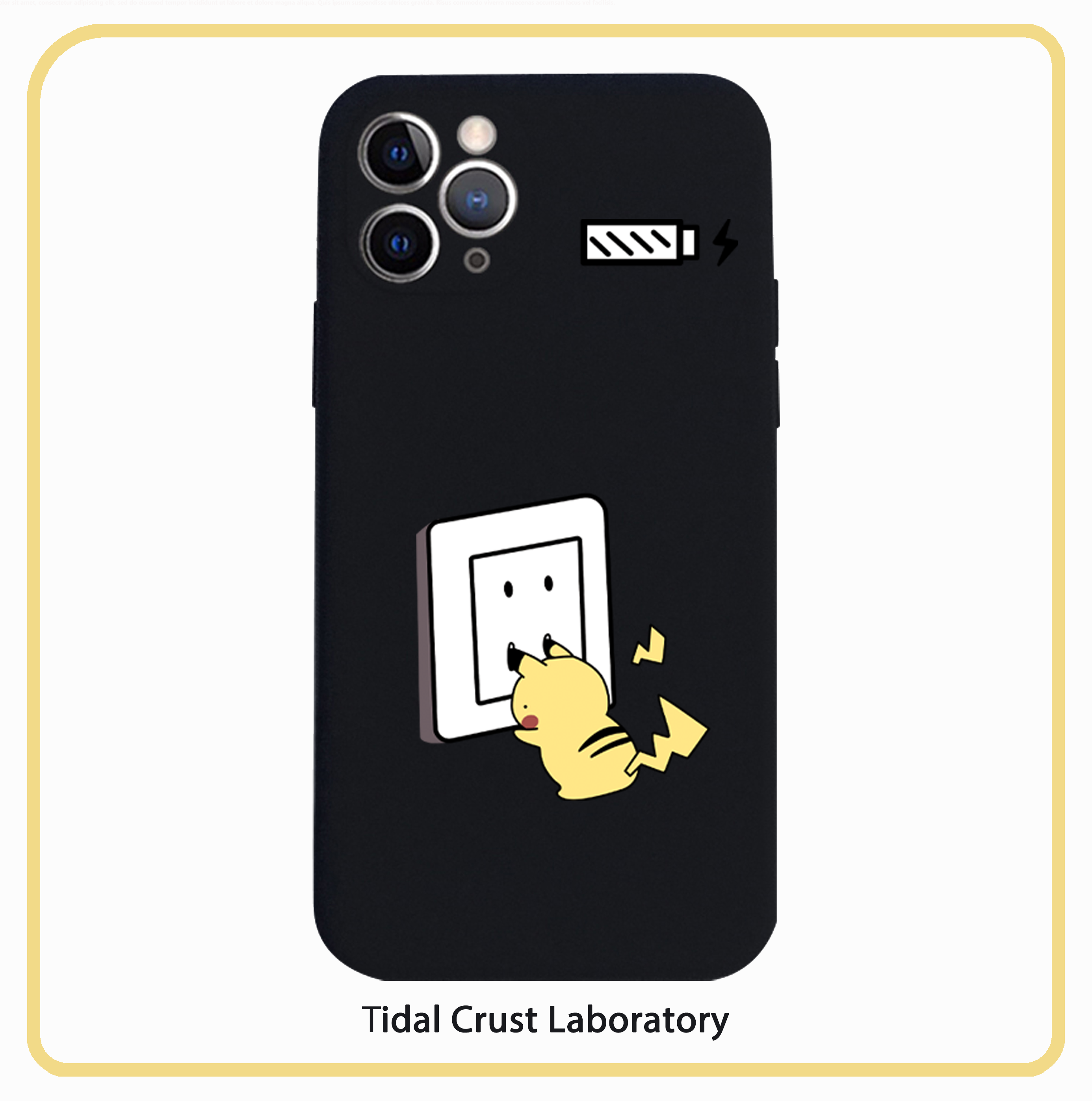 黑色液态硅胶卡通皮卡丘手机壳适用苹果17nova14华为p70mate70小米15opporeno14vivo30荣耀300iPhone15