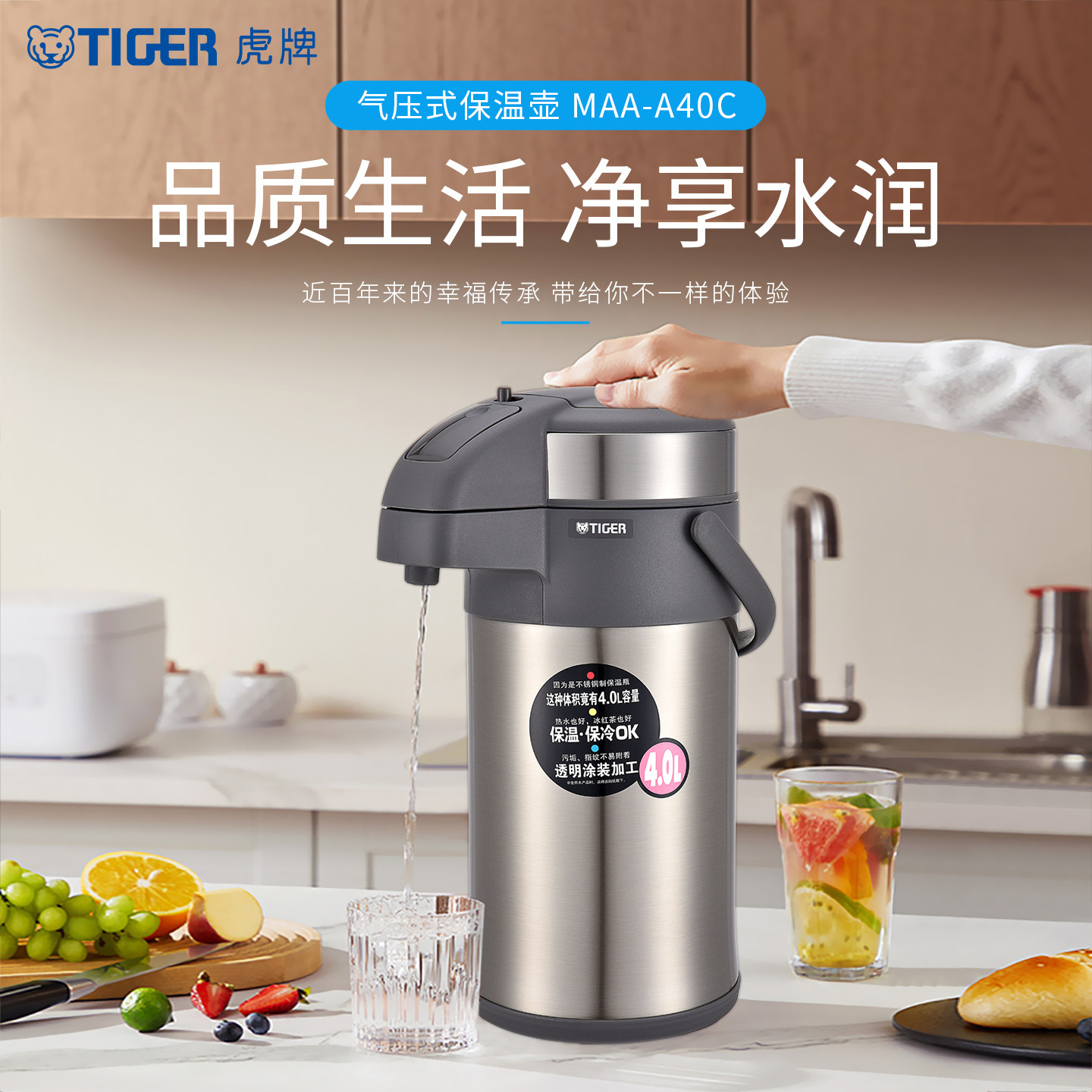 tiger虎牌热水瓶保温壶MAA-A40C不锈钢家用大容量水壶正品4L茶具