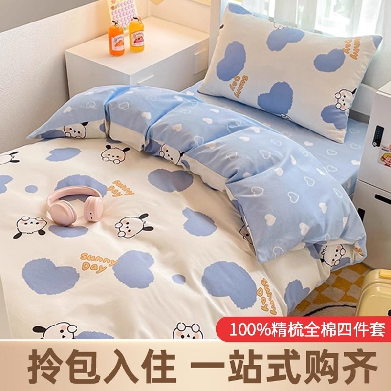 ins纯棉四件套床上2025新款全棉被套床单被罩学生单人宿舍三件套4