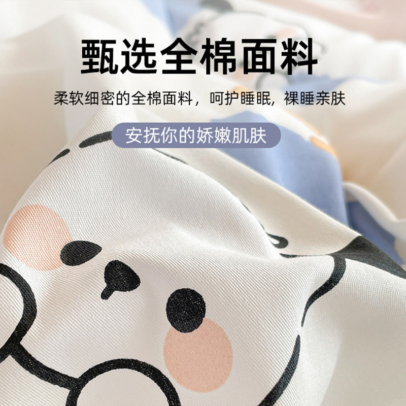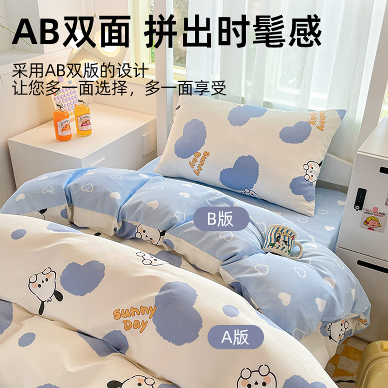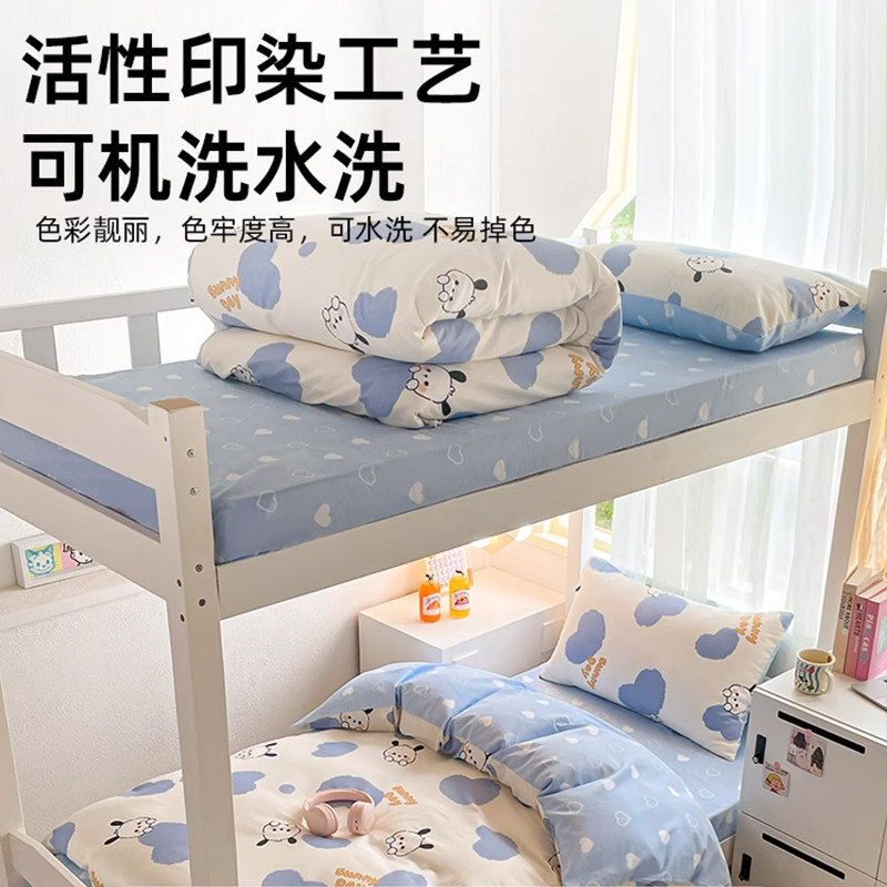 无印良品全棉四件套学生宿舍纯棉卡通儿童被套床单三件套床上用品