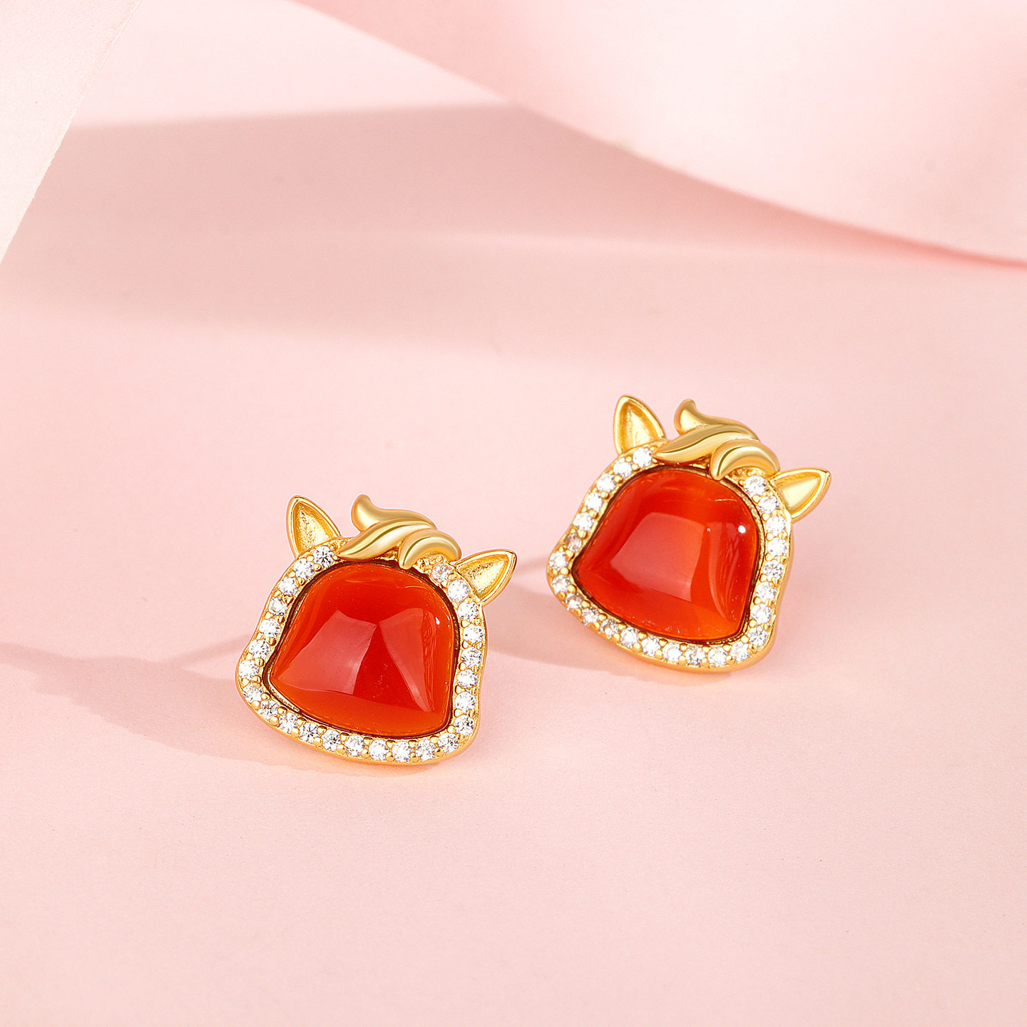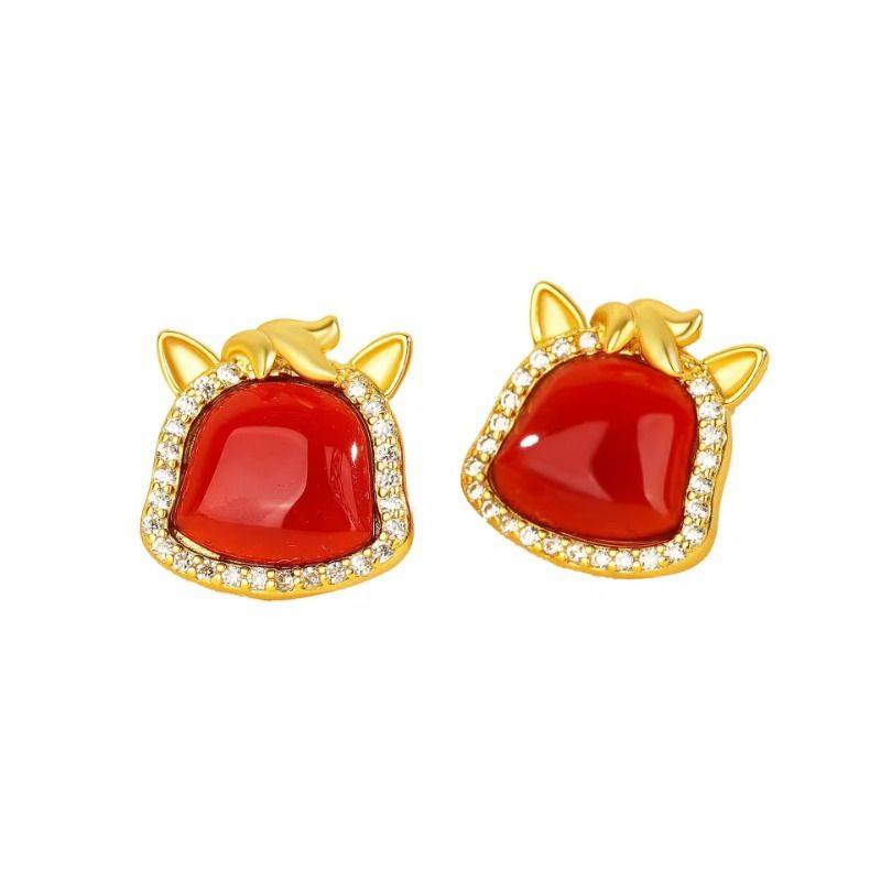 s925纯银新年小马耳钉女红玛瑙本命年马生肖耳钉精致高档送礼物