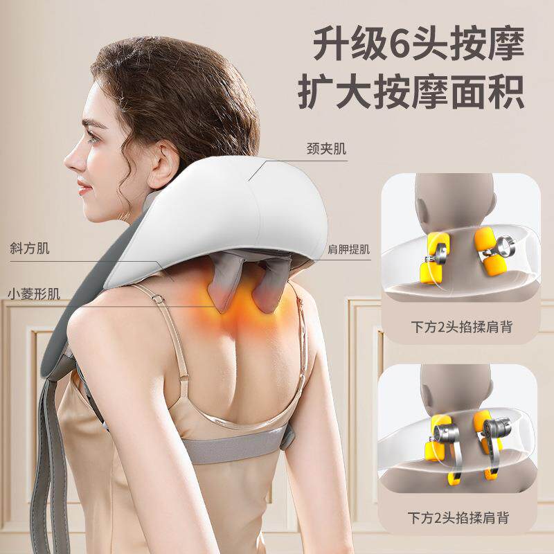 跨境智能颈椎按摩器颈部斜方肌肩颈肩部腰部腿部揉捏热敷按摩披肩