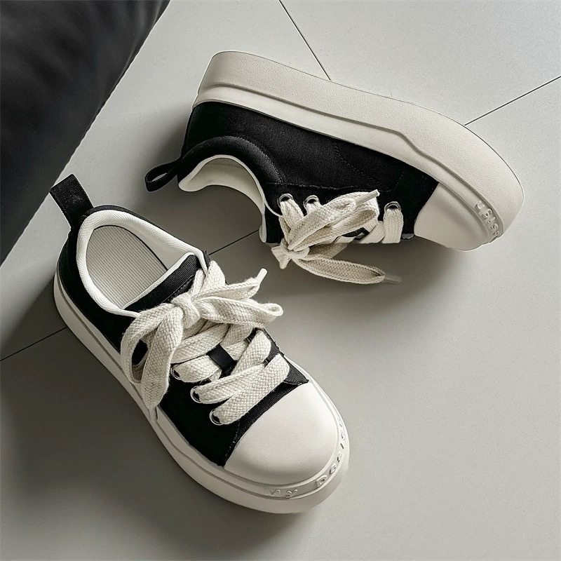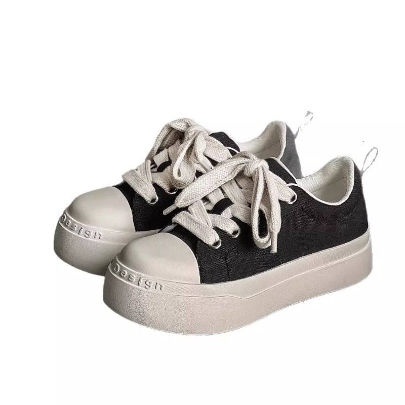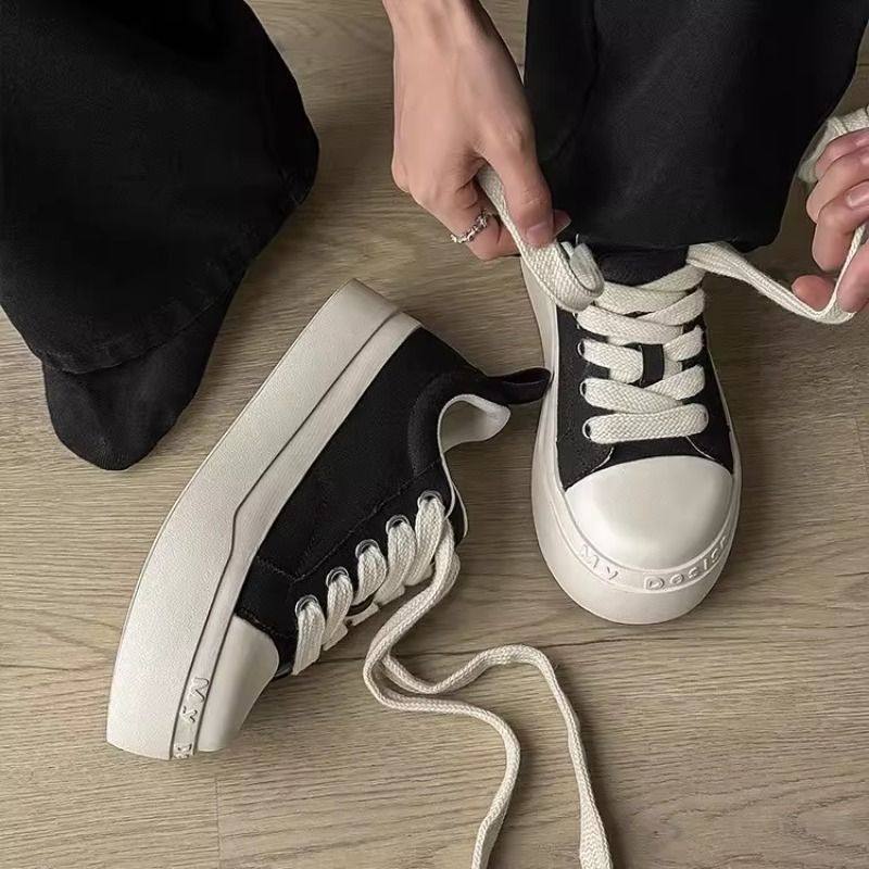2026春季黑白情侣款帆布鞋厚底增高休闲大头鞋小众百搭舒适板鞋