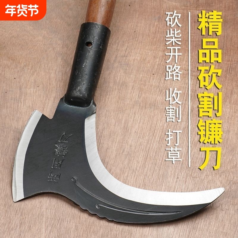 加厚双砍两用锰钢镰刀割草刀农用高锰钢户外砍柴砍树