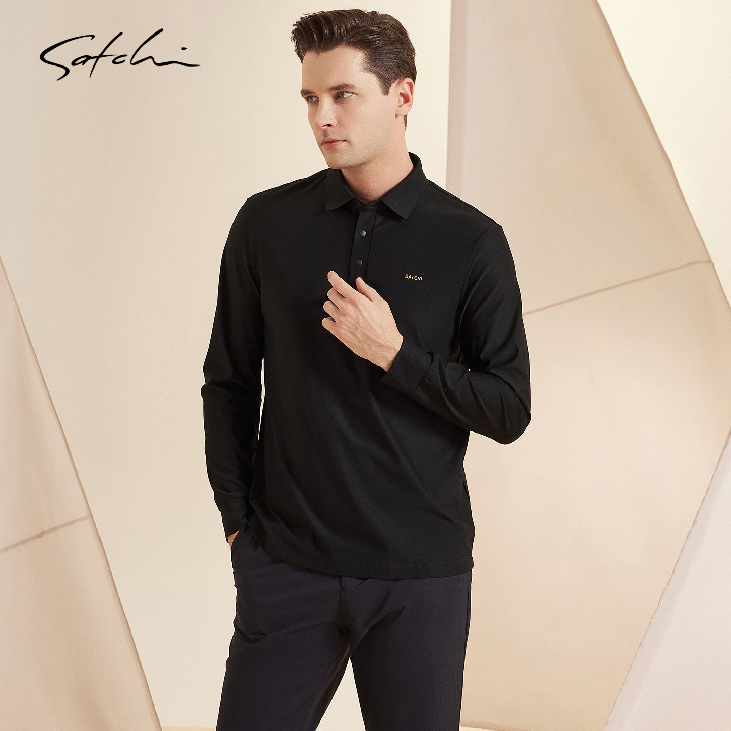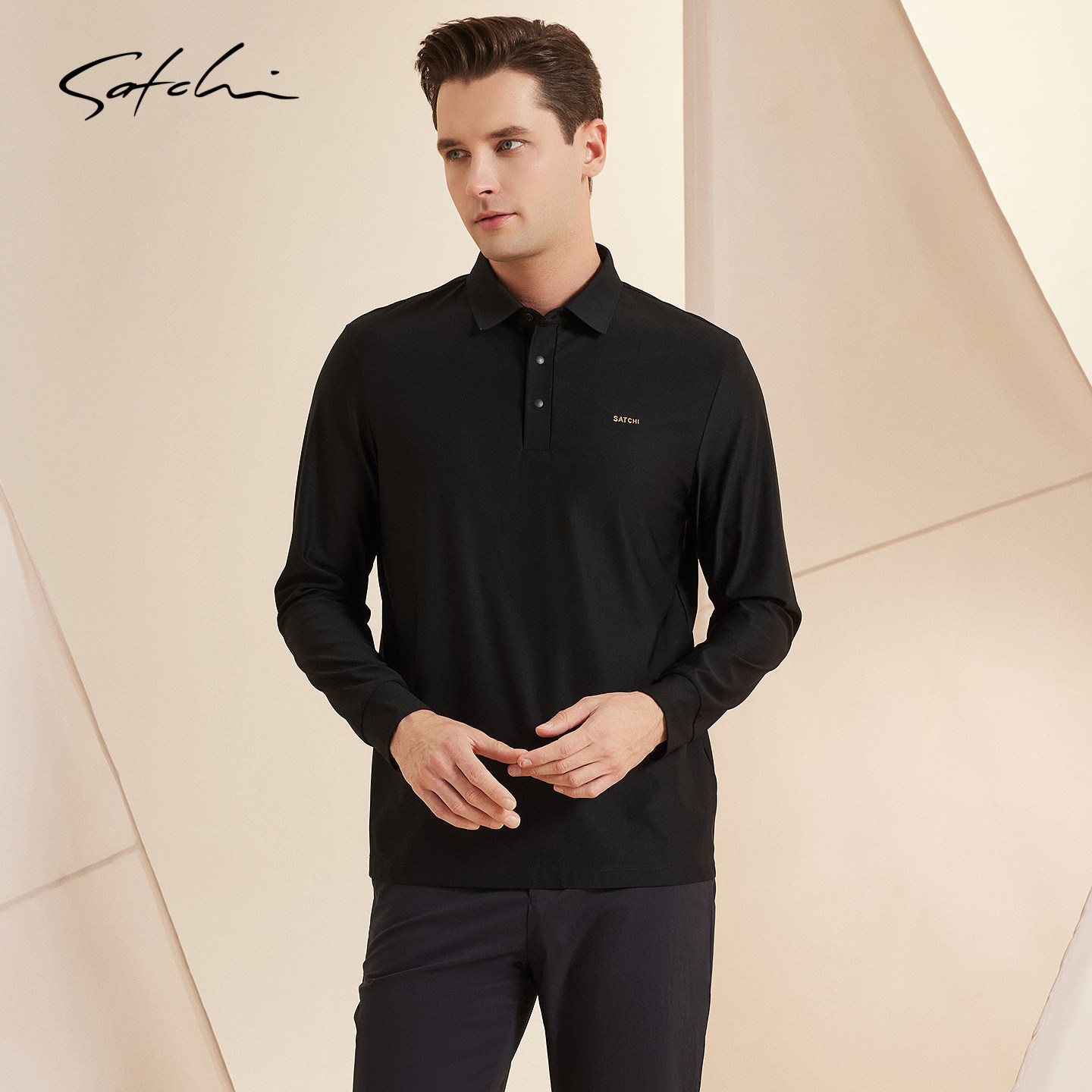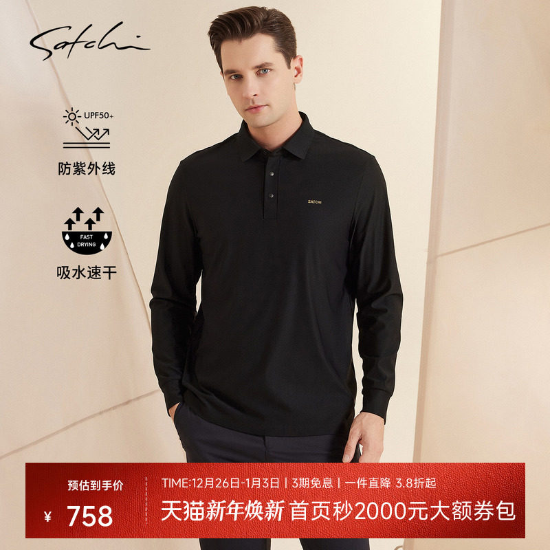 [黑金系列]SATCHI沙驰男装男士长袖POLO衫春季新款防晒速干T恤衫