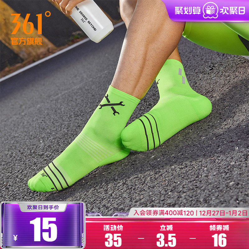 361飞燃跑步袜2024年冬男士中长款跑步运动袜子专业跑步训练袜男