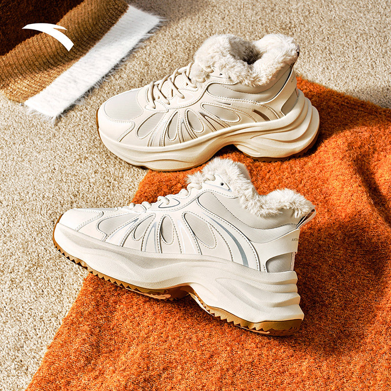 安踏引力丨加绒保暖休闲鞋女厚底增高软底老爹鞋简约小白鞋二棉鞋