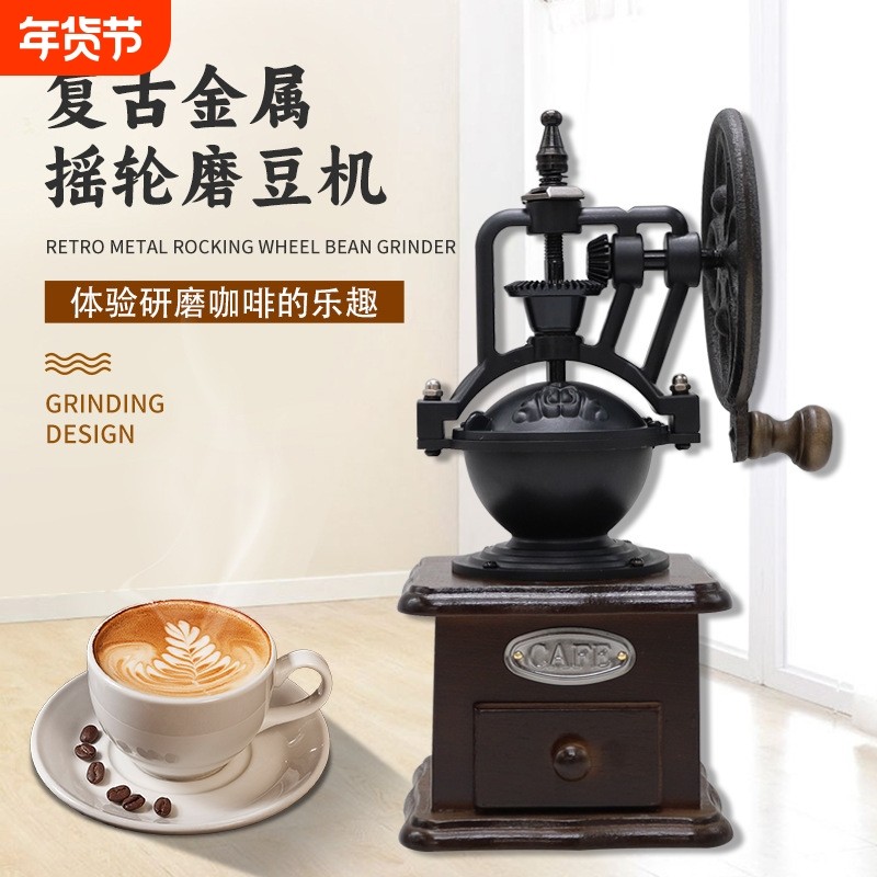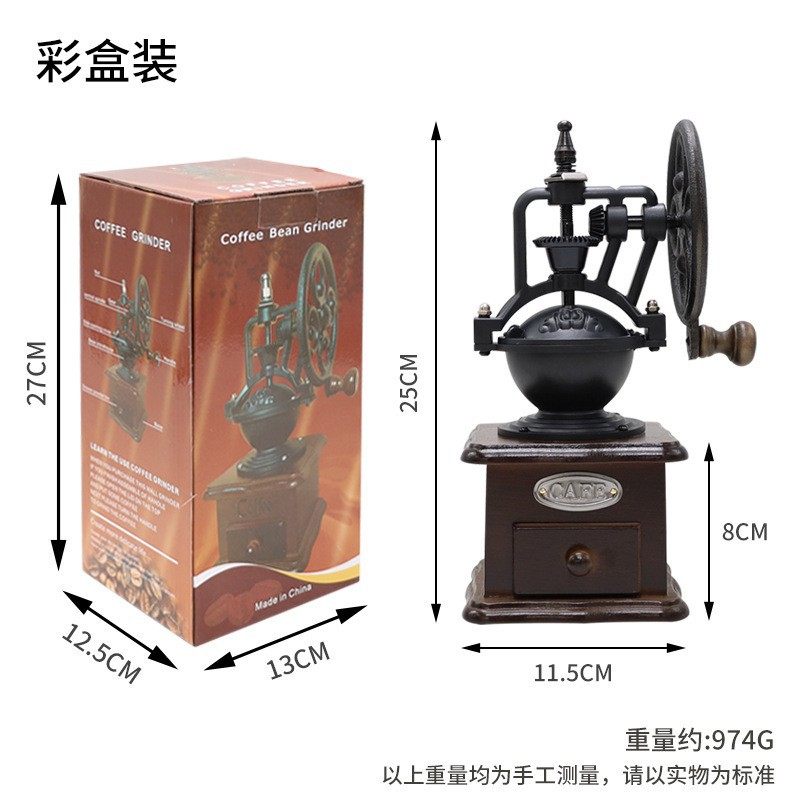 实木复古经典咖啡粉机手动金属摇轮咖啡胡椒磨机细腻研磨可调节