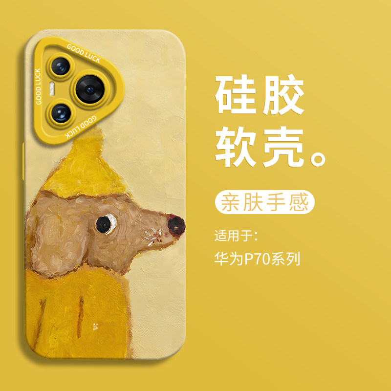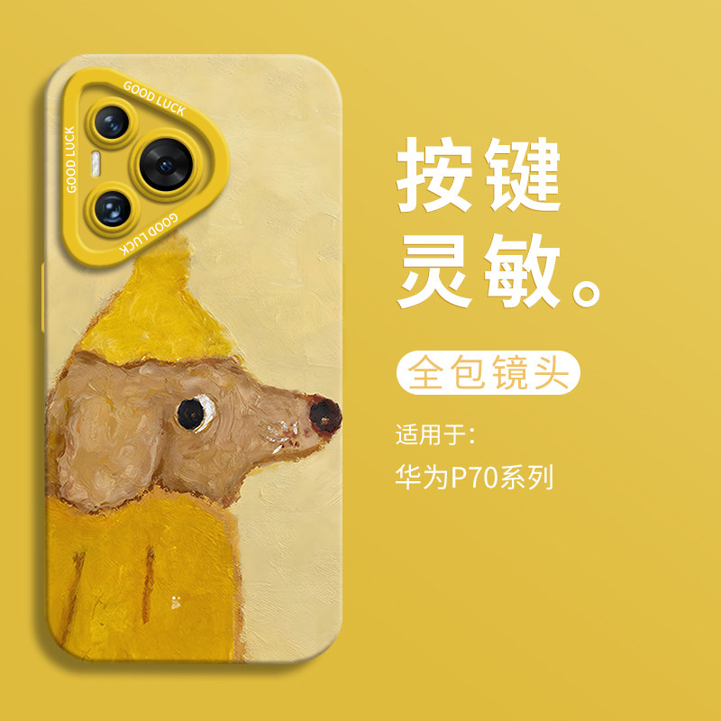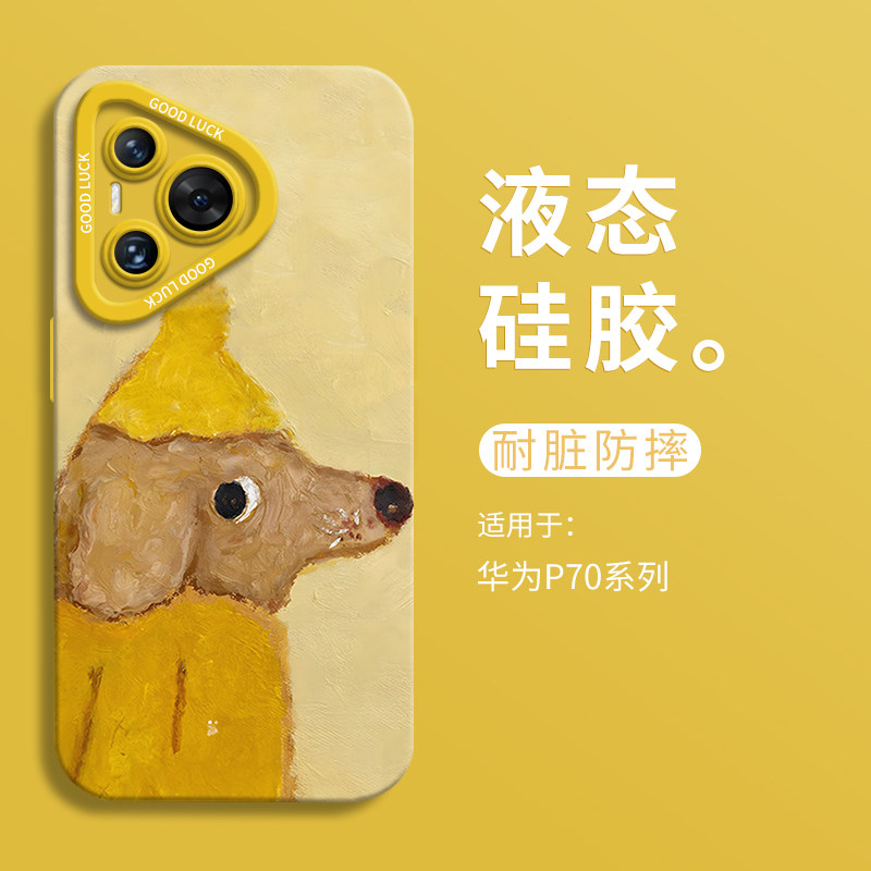 可爱黄帽小狗适用华为pura70ultra手机壳全包p70pro瞳眼液态硅胶壳华为p60art男软壳HUAWEI女P60卡通p70个性