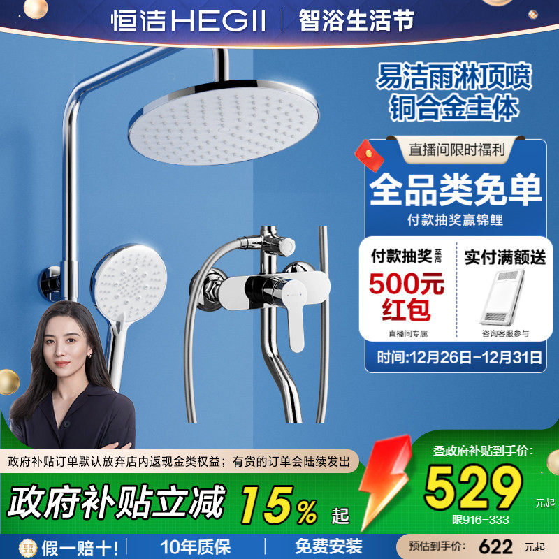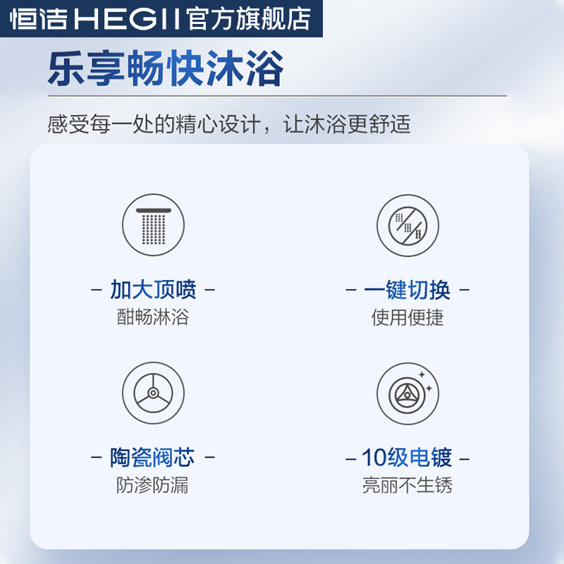 恒洁淋浴花洒卫浴套装浴室铜合金龙头淋雨器淋浴喷头套装家用明装