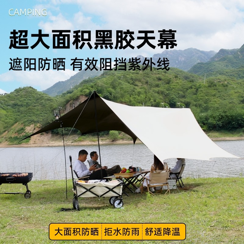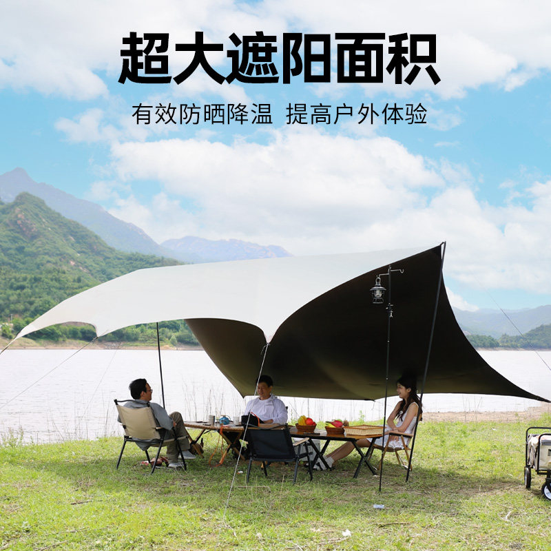 winpolar川跃户外专业防晒黑胶涂层沙滩遮阳棚露营装备蝶形天幕