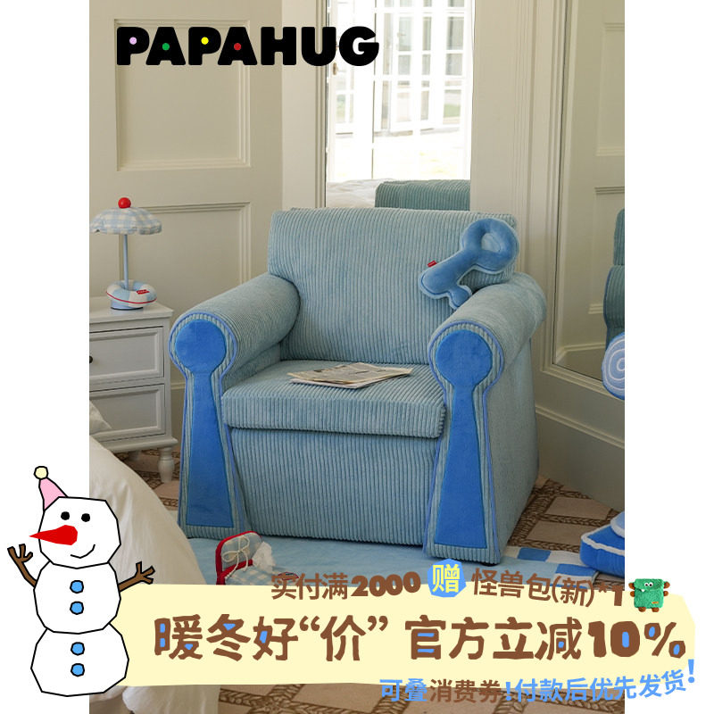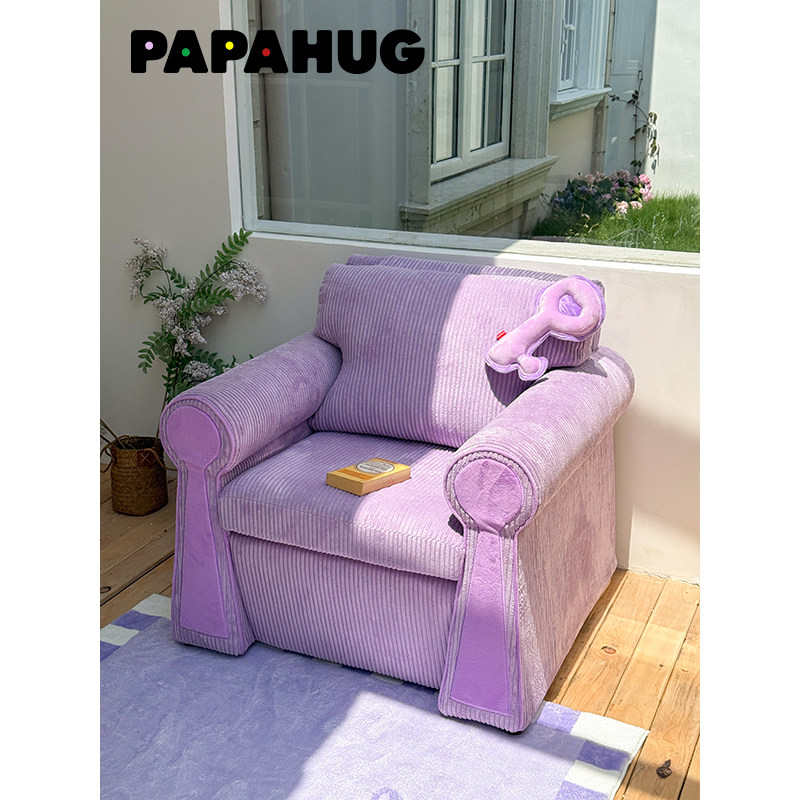 PAPAHUG 休闲沙发椅锁造型复古沙发可躺可睡阳台卧室客厅单人椅