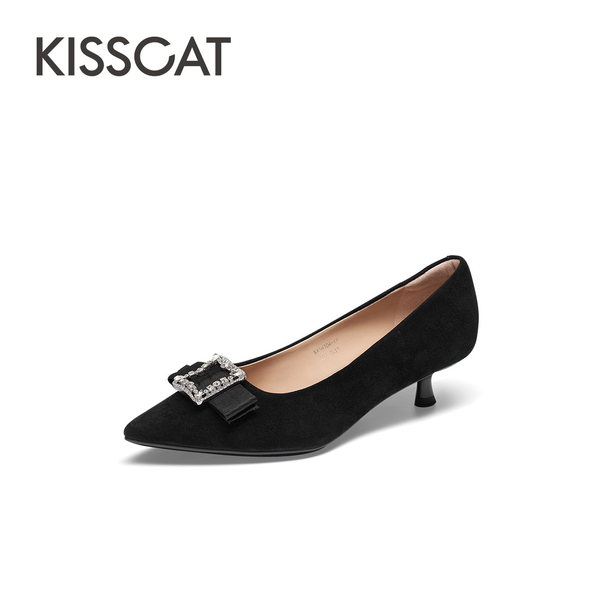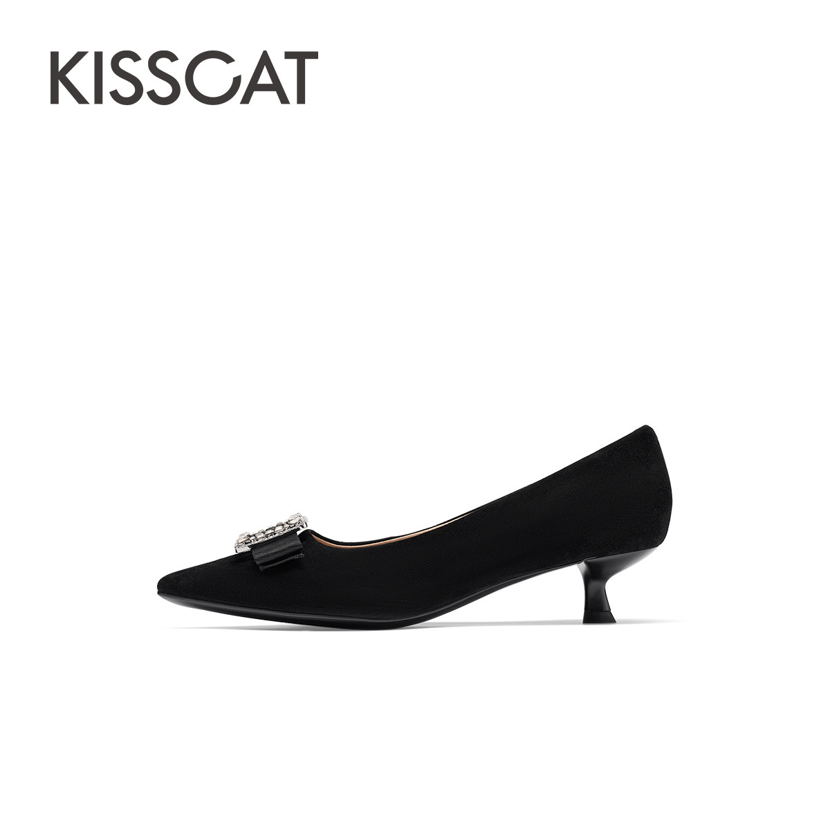 [舒心]接吻猫秋季新款优雅气质浪漫尖头细跟单鞋女