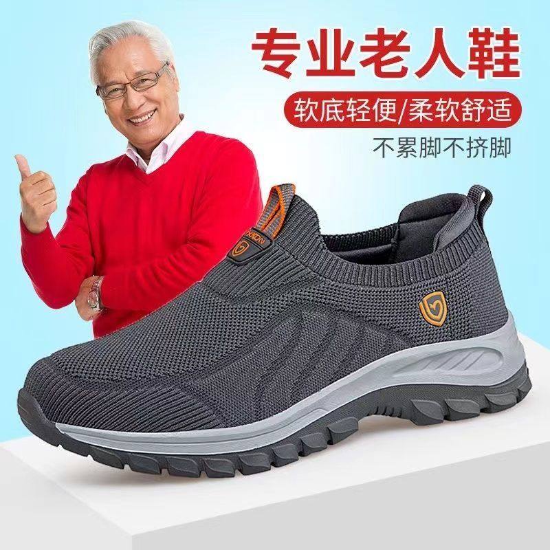 春夏季老人鞋男中老年健步鞋一脚蹬爸爸运动鞋老北京布鞋软底轻便