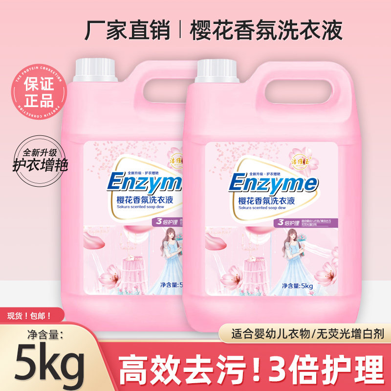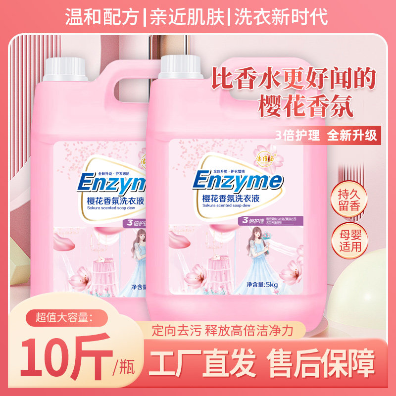 新品樱花香氛洗衣液10斤留香味持久去污渍母婴整箱批家用实惠大桶