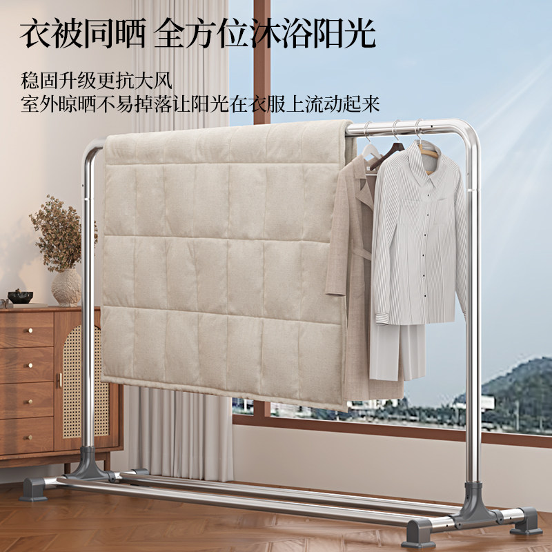 不锈钢加粗款落地晾衣架家用阳台挂衣架晒被架衣帽架子卧室双杆