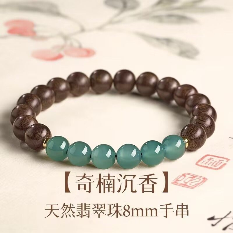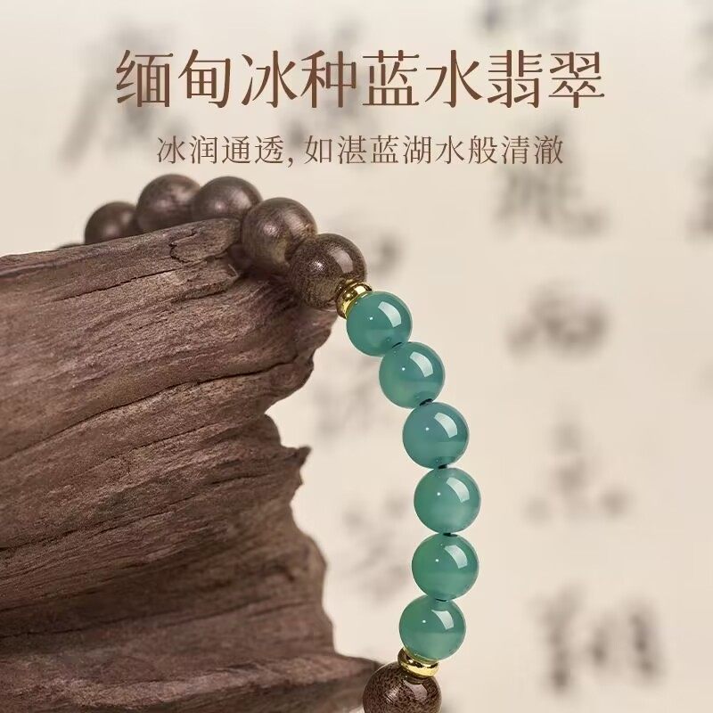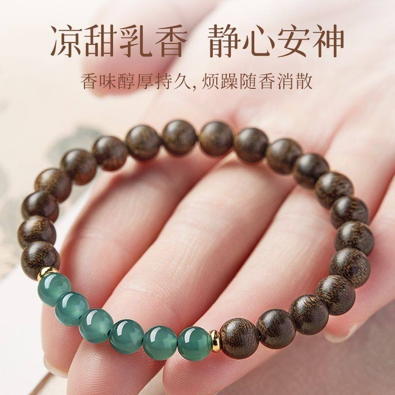 文莱沉香手串沉水级天然翡翠檀木手链稳定4mm木头串蓝水情绪冰种