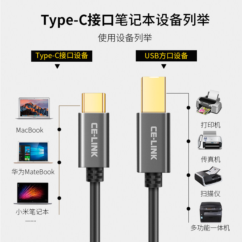 方口type-c转USB打印机数据线耳放DAC解码器声卡电子钢琴midi键盘