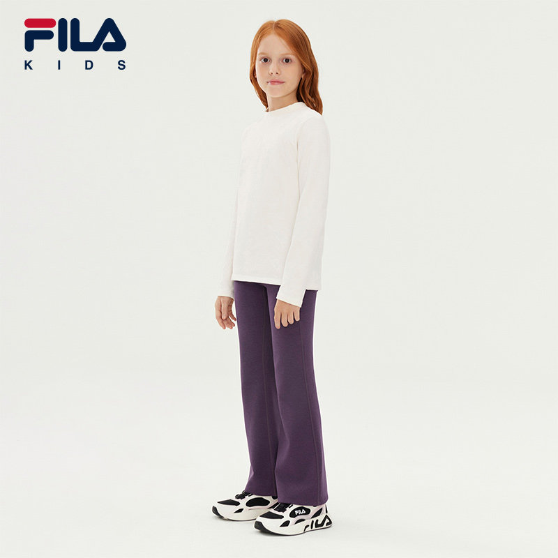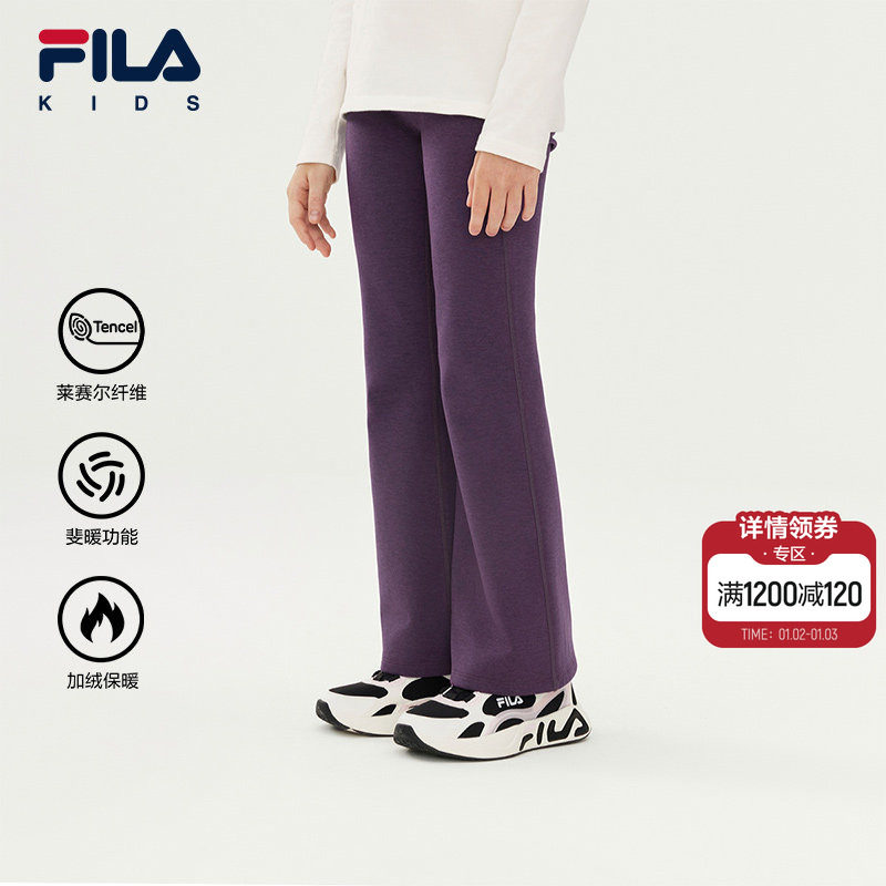 FILA KIDS斐乐童装儿童长裤冬季款女童加绒保暖运动紧身针织裤