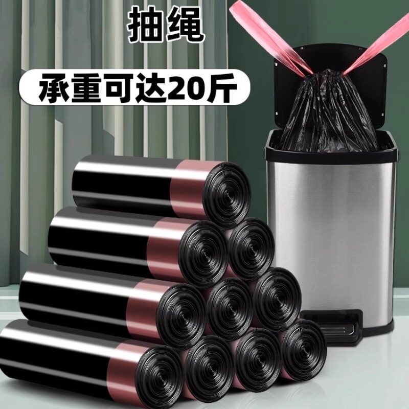 垃圾袋子加厚抽绳式黑色大号家用手提式厨房宿舍垃圾袋特厚塑料袋