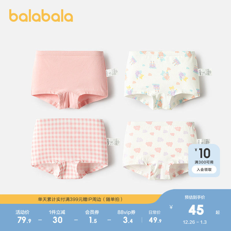 巴拉巴拉女童内裤棉平角儿童短裤小童宝宝弹力舒适亲肤甜美四条装