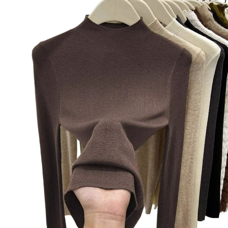 打底衫女毛衣2026秋冬新款半高领针织衫修身薄款内搭中领绿色黑色