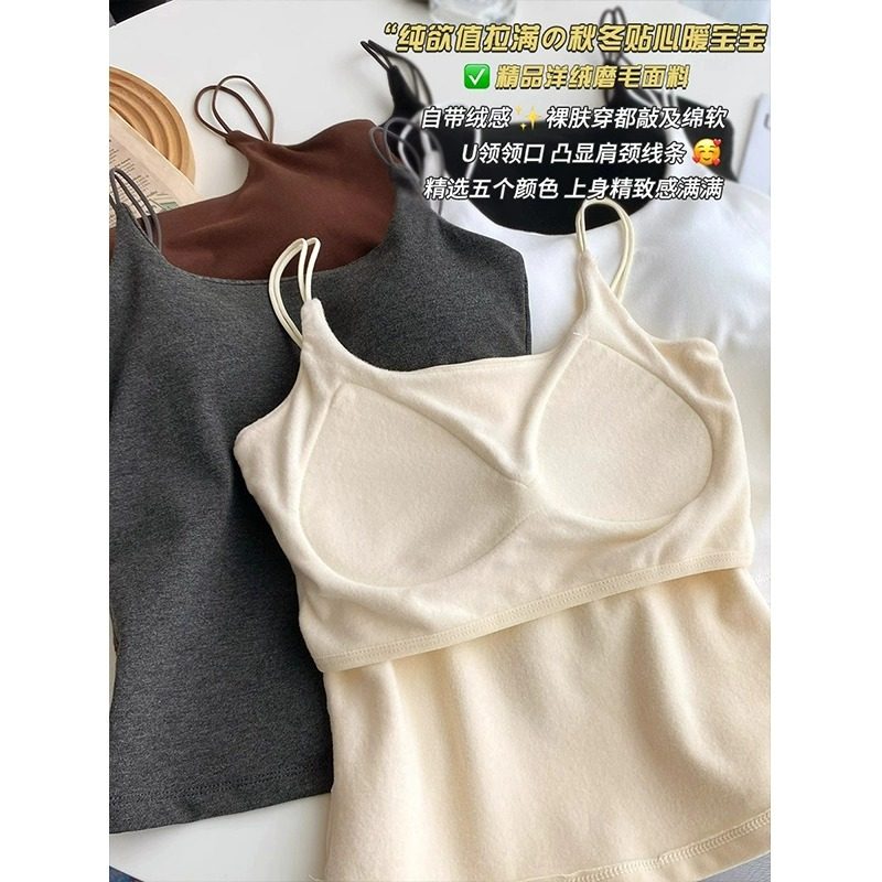 磨毛保暖背心女2025冬新款带胸垫一体无痕吊带打底内衣加绒加厚