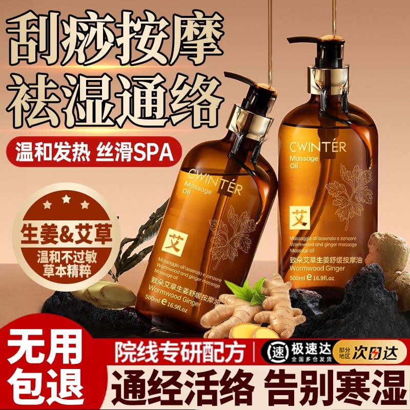 生姜艾草按摩精油全身通经络发热开背推拿刮痧身体正品官方旗舰店