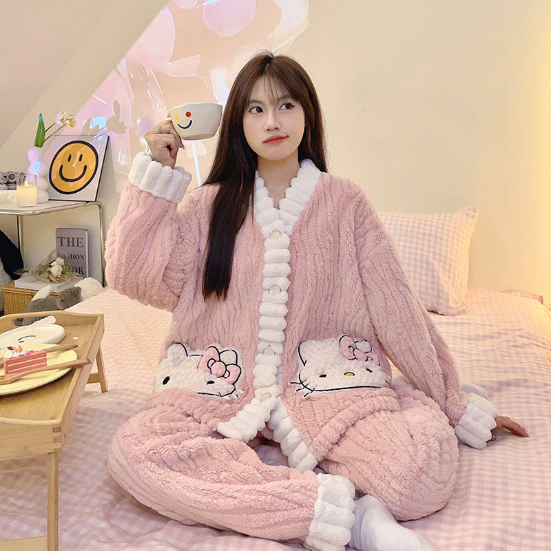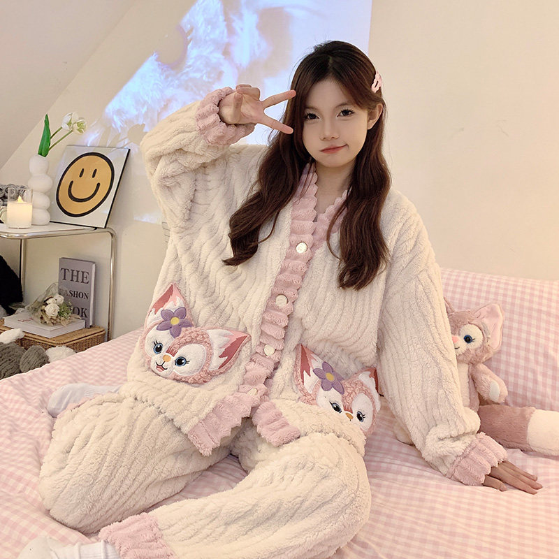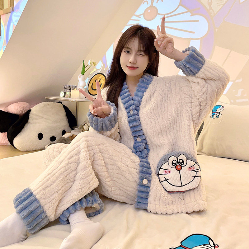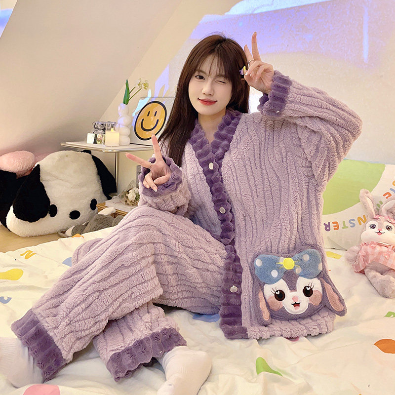 睡衣女冬季加厚保暖珊瑚绒套装2025年新款卡通秋冬款法兰绒家居服