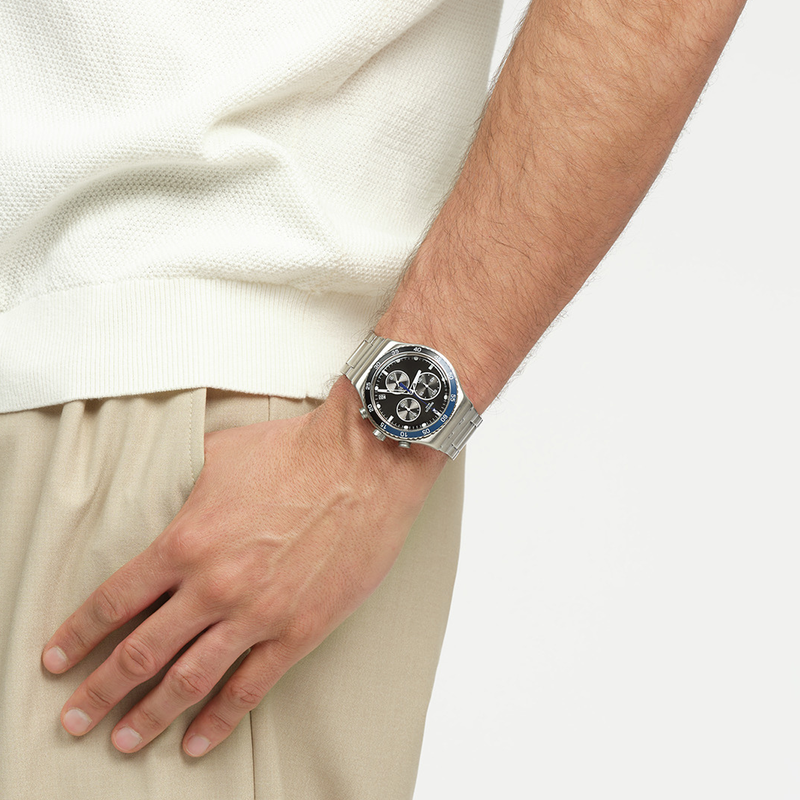 Swatch斯沃琪瑞士手表商务轻奢男士金属日历三眼计时腕表新年礼物