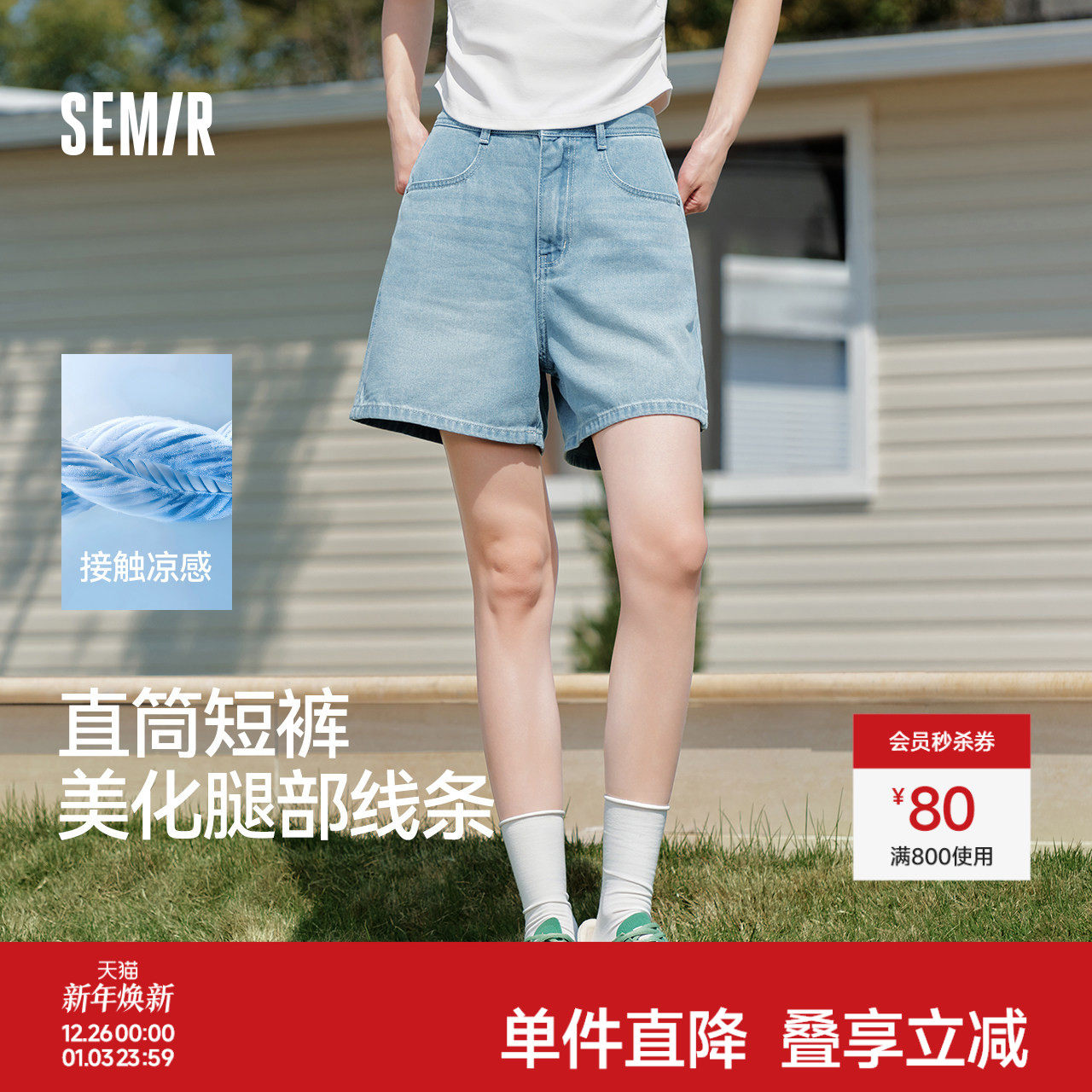 森马牛仔裤女凉感直筒裤2025夏新款短裤浅色白色休闲女裤蓝色牛仔