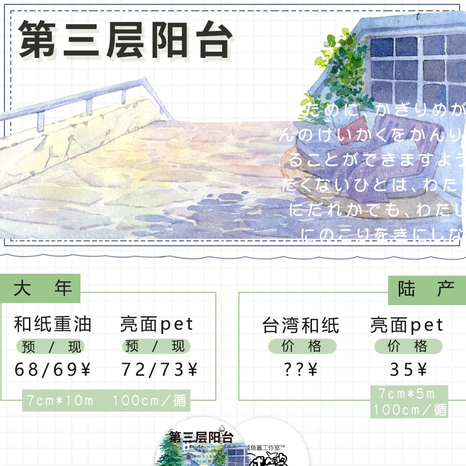 第三层阳台大年/陆产/和纸/PET造景拼贴手账胶带咸鱼酱原创