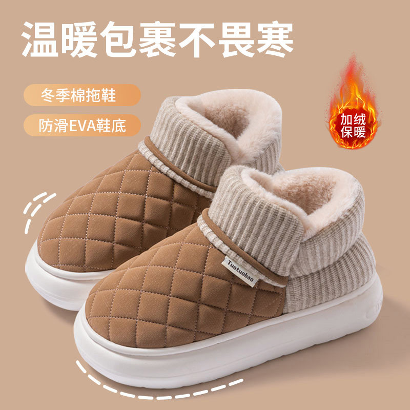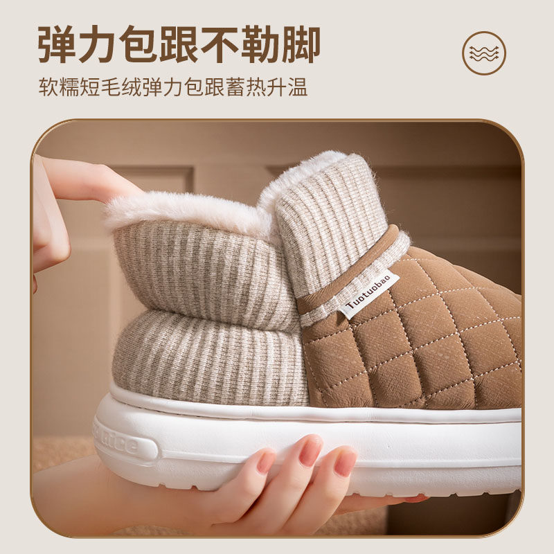 厚底棉拖鞋男女包跟秋冬2025新款防滑加绒保暖防水增高月子雪地靴