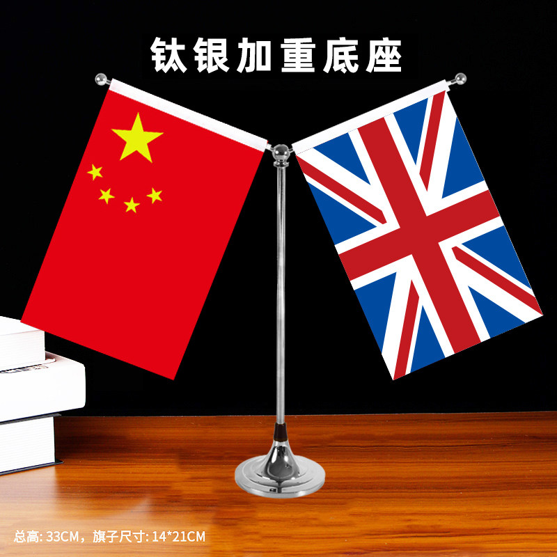 英国中国国旗摆件办公室高档水晶桌旗会议室谈判旗国旗外国旗桌面不锈钢旗座旗架室内台旗公司小旗帜定制